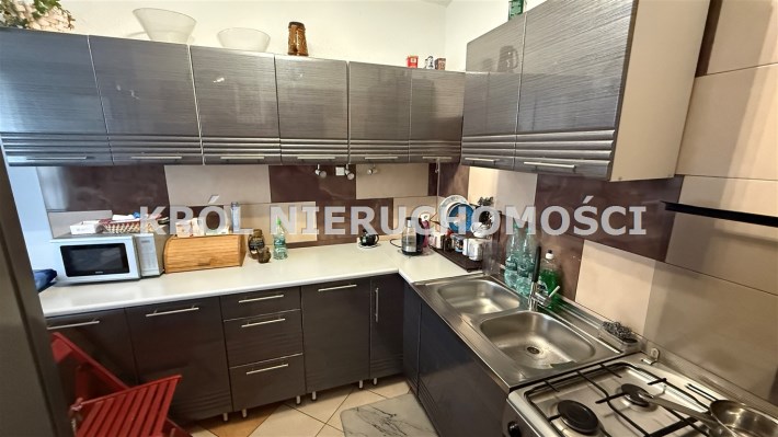 Kuchnia wyposażona w zabudowę meblową oraz sprzęty, co umożliwia natychmiastowe zamieszkanie.