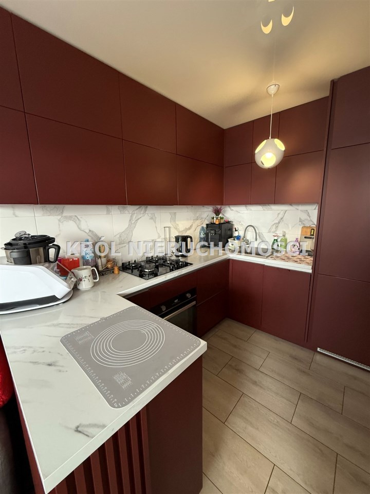 W cenie pozostaje nowa kuchnia wykonana na wymiar wraz z pełnym wyposażeniem AGD, szafa zabudowana w przedpokoju, meble w małym pokoju oraz możliwość pozostawienia większości wyposażenia w salonie. Dodatkowo w mieszkaniu zostają karnisze, oświetlenie oraz inne elementy stałej zabudowy.