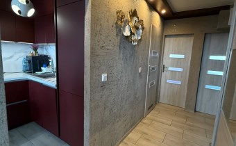 Na podłogach znajdują się nowoczesne kafelki drewnopodobne, na ścianach gładzie, ozdobne tapety oraz tynki dekoracyjne. W całym mieszkaniu zamontowano sufity napinane z oświetleniem LED, które nadają wnętrzu wyjątkowego charakteru. Okna są plastikowe, dodatkowo wyposażone w zewnętrzne rolety antywłamaniowe. Wymienione zostały również wszystkie drzwi – zarówno zewnętrzne, jak i wewnętrzne.